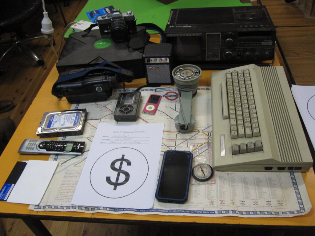 A collection of portable items that are now all replaced by a smart phones: compass, torch, SLR camera, TV remote, Hi-8 Camcorder, map, portable speaker, 1st generation Xbox Game Console, TNC, and … obviously a phone.
