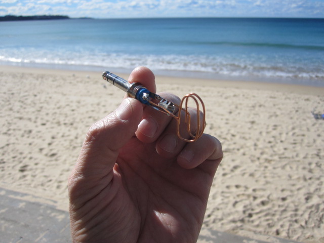 Got keyer in your rig but don’t want to invest into an iambic key without really knowing if you will like it? Here is a very simple and cheap key to get your started. A stereo 1/4 inch plug, 2 short copper wires, et voilà. Can be used as right hand or left hand key, just rotate the key 180 degrees. Our club rig has the key plug on the front, even easier!